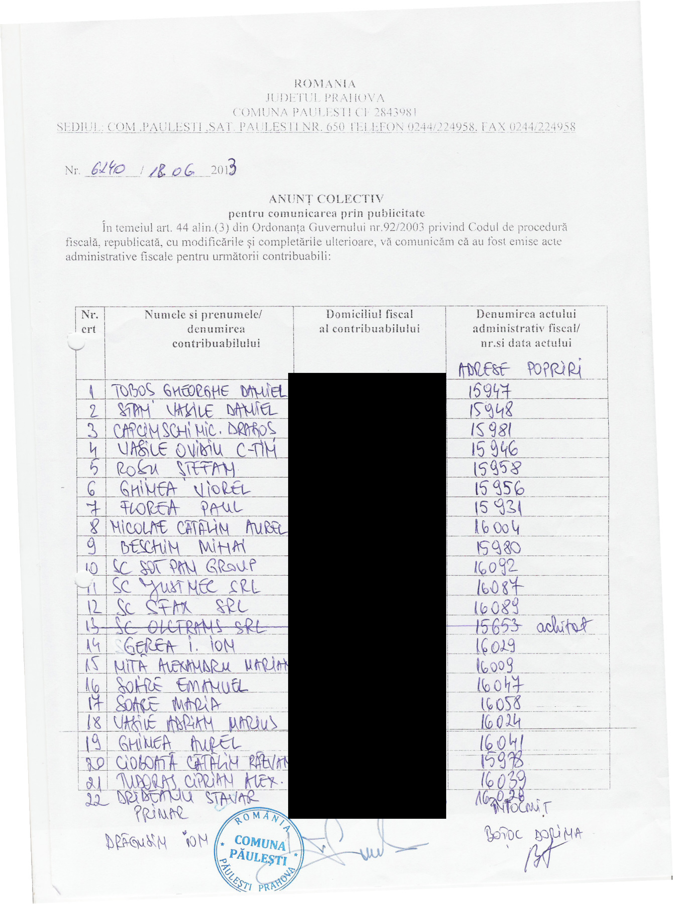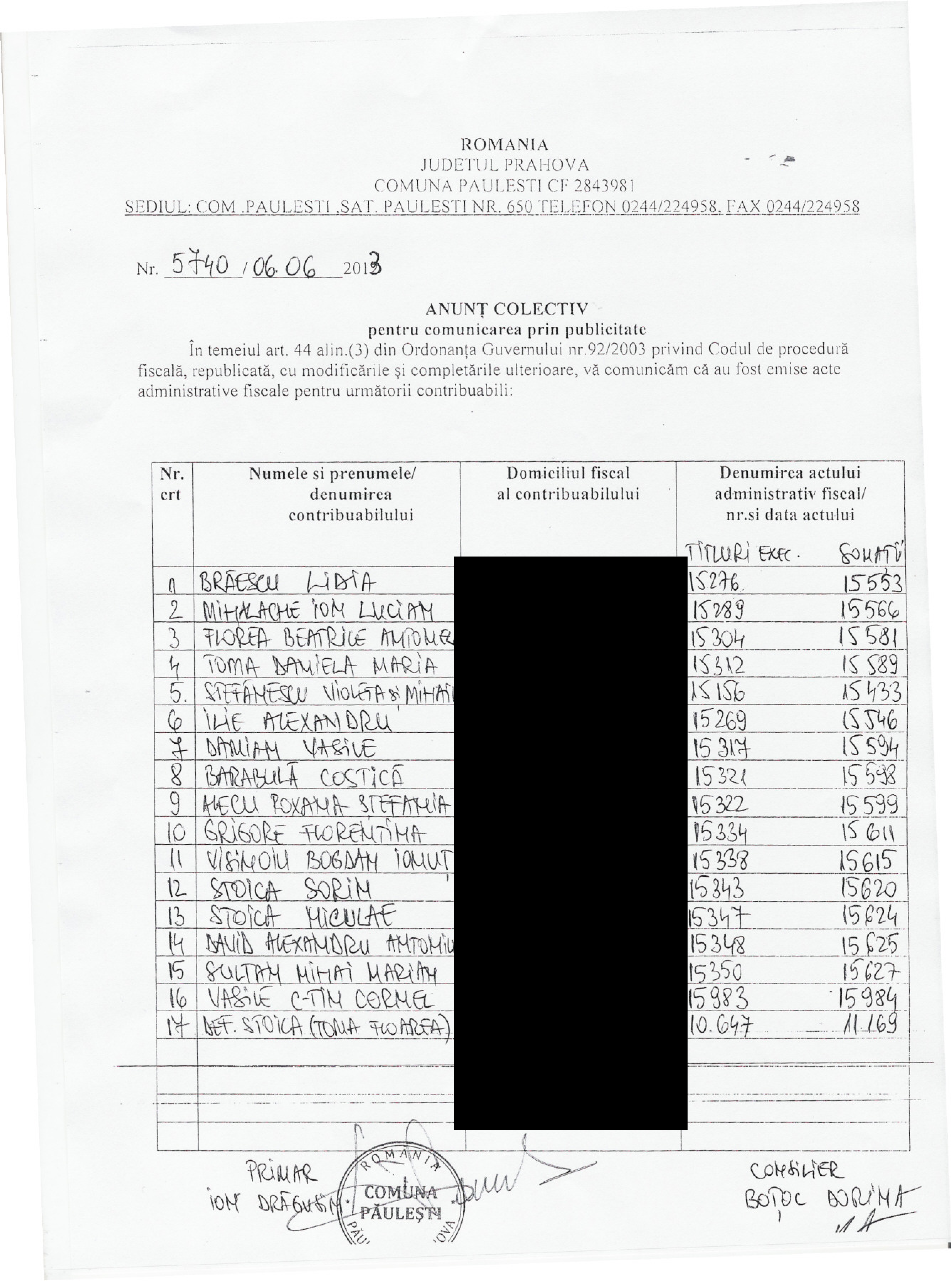 Anunt colectiv pentru comunicarea prin publicitate Nr. 12017 din data de 30.06.2025 [P.F.]