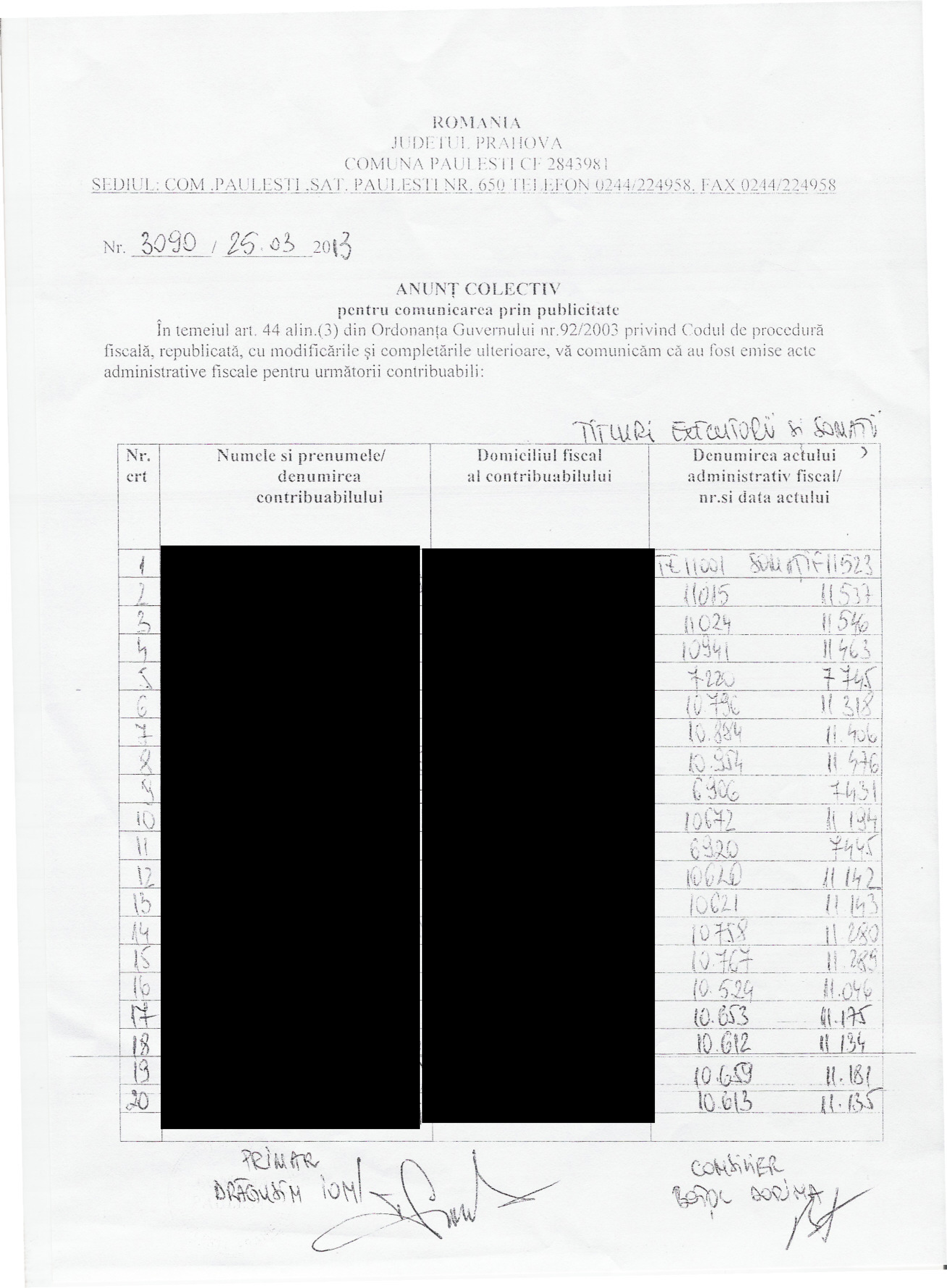 Anunt colectiv pentru comunicarea prin publicitate Nr. 20819 din data de 30.10.2025